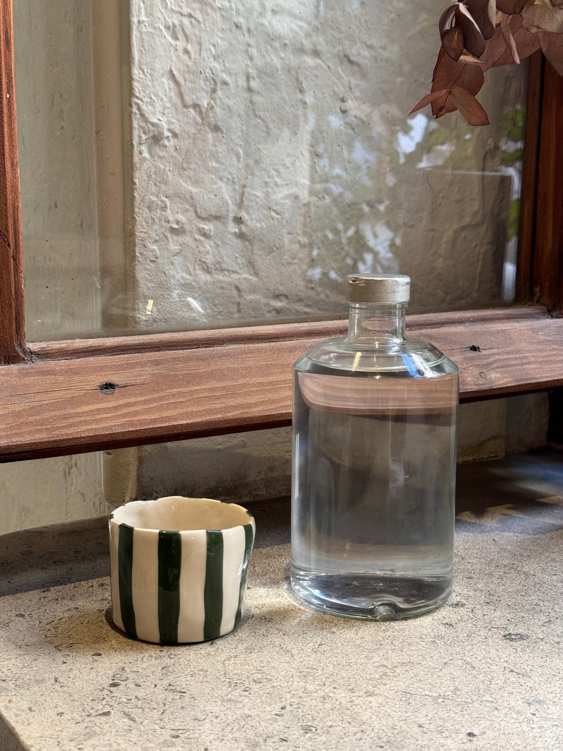 A handcrafted piece designed for espresso lovers who appreciate artisan quality. This compact mug features deep green lines that evoke a natural, earthy vibe, adding a touch of elegance to your coffee ritual. Perfect for a cozy espresso shot, it combines functionality with unique, rustic charm.